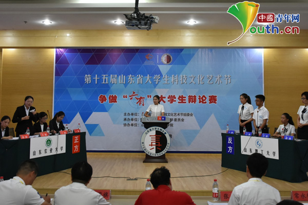 中国青年网北京6月19日电(记者李川 通讯员侯宁 乔旭)聚齐鲁英才论道明志,扬稷下遗风辩理修身。由山东省大学生科技文化艺术节组委会主办,共青团山东理工大学委员会承办,山东理工大学法学院协办的山东省大学生辩论赛于6月18日上午在山东理工大学逸夫图书馆报告厅圆满落幕。此次辩论赛主评委由北京林业大学马克思主义学院公共关系文化传播与应用研究所所长景庆虹教授担任。