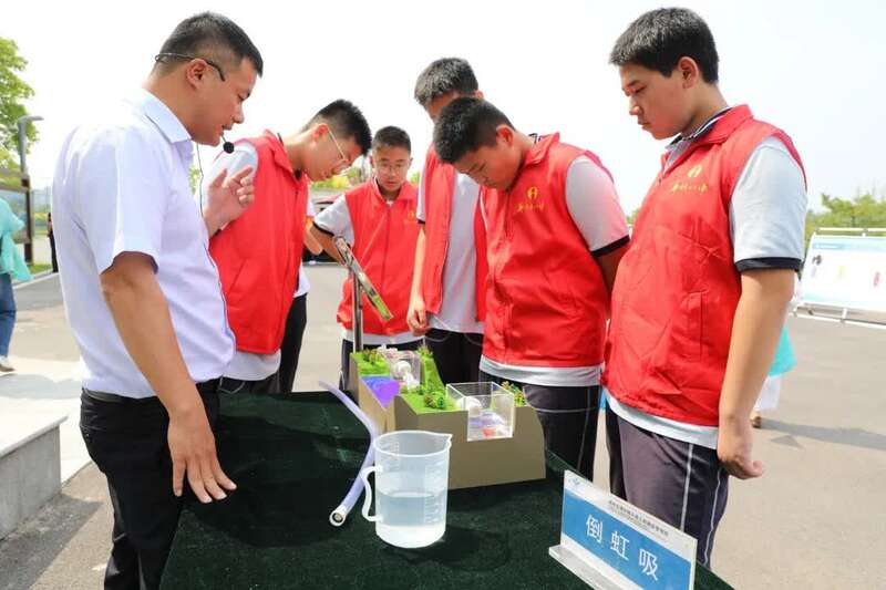 工程师们利用输水模型为大家详细介绍了渡槽工程、倒虹吸工程的结构和原理,并通过水质监测实验互动交流的方式为同学们演示了参数测定仪、相色谱·质谱联用仪、水污染无人侦察机等的使用法,同学们纷纷表示大开眼界,在活动中学到了许多有趣又实用的知识。