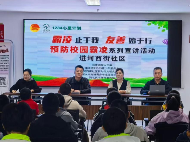 10月12日,团河北省衡水市委组织衡水市12355青少年服务台法律维权专家走进衡水市河西街社区,开展“霸凌止于我 友善始于行”预防校园霸凌宣讲活动。