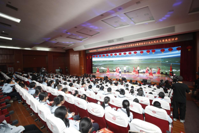 活动在激昂的出旗曲和嘹亮的队歌声中拉开帷幕,全体少先队员及辅导员以标准队礼和饱满热情,表达对少先队组织的热爱与崇敬。活动现场对2025年廊坊市少先队风采大赛获奖集体和个人进行表彰。大赛围绕少先队辅导员技能大赛、少先队小骨干风采大赛等4大项目展开,累计10万余人次参与。主题展演以纪念中国人民抗日战争暨世界反法西斯战争胜利80周年为契机,创新思政课形式,将思政课融入“主题讲解+艺术展演”的沉浸式体验中,通过朗诵、歌舞、武术等展演活动,弘扬爱国主义和抗战精神,展示廊坊发展变化,引导少先队员铭记历史、坚定信念。