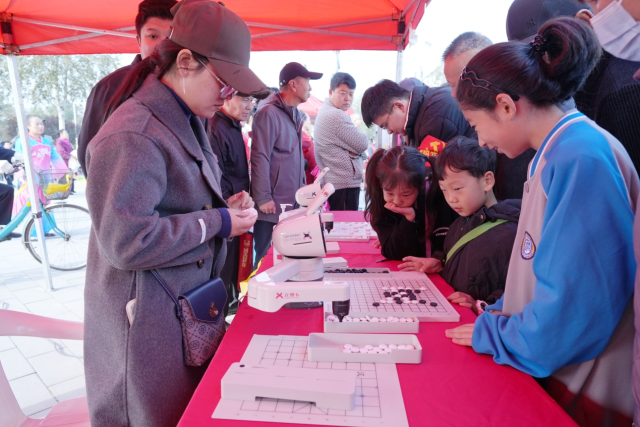 在智能象棋区,“永团团”青年志愿者设置的AI象棋体验区,吸引银发棋友轮番与智能机器人“过招”。