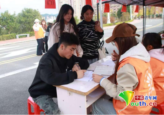 志愿者引导师生填写献血登记表。贵州黔南科技学院团委 供图