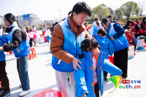为孩子发放温暖包。中国青年网通讯员 左橙 供图
