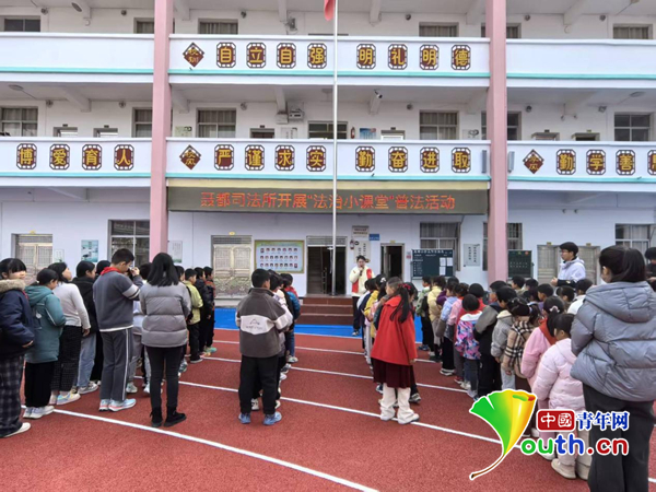 聂都司法所利用课间操时间开展普法活动。中国青年网通讯员 黎满园 供图