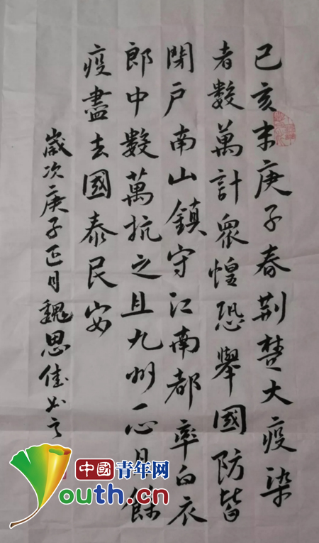 中国青年网北京2月18日电(记者 李川 通讯员 陈静)新冠肺炎疫情牵动着全国人民的心,近日,延安大学团员青年在学校团委的指导下,以制作漫画、创作书法绘画作品等方式宣传防控知识,传递青春正能量,为武汉加油!为中国加油!
