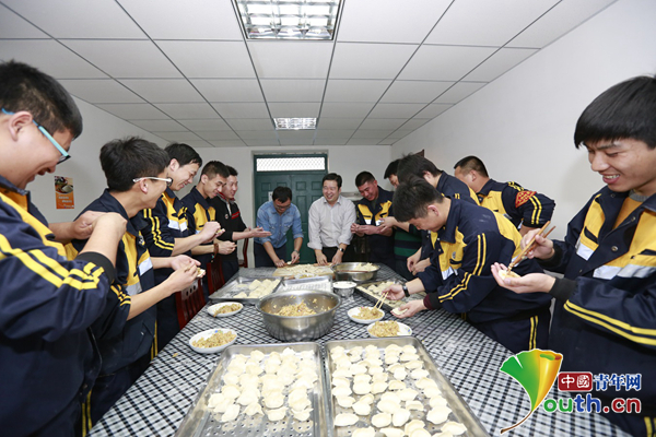 团干部与青年职工们一同包饺子