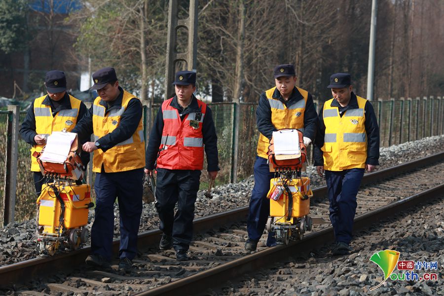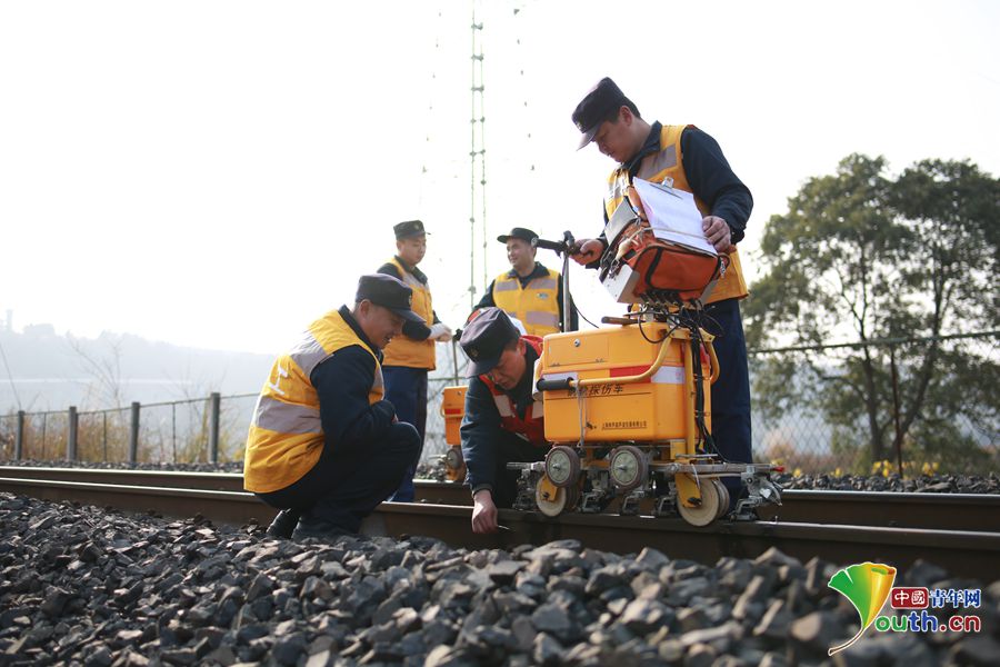 随着2019年春运即将到来,近日,中国铁路成都局集团有限公司绵阳工务段探伤车间的作业小组,走上宝成线石马坝至绵阳区间,开始了紧张的日常探伤工作。
