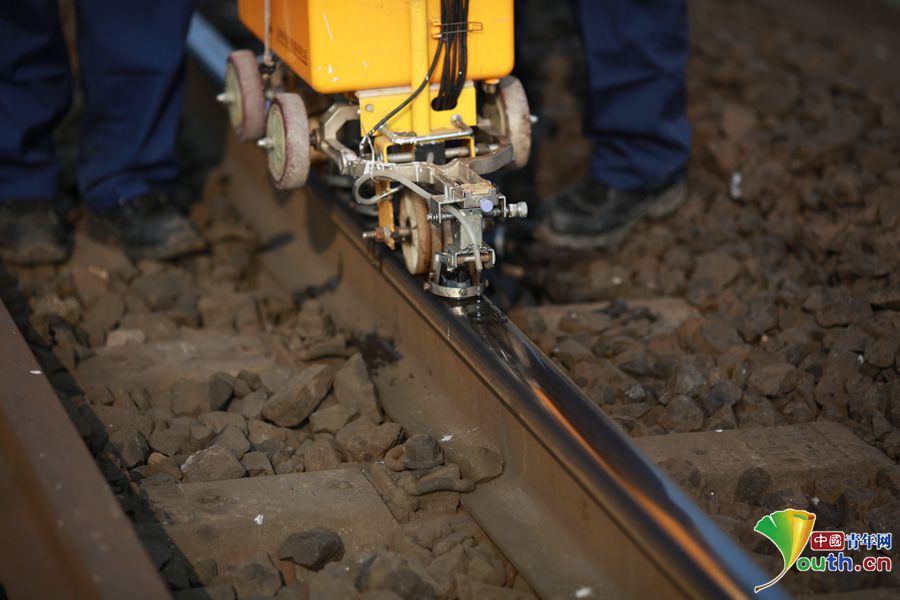 图为钢轨探伤仪正在进行工作,确保每一寸钢轨的安全。中国青年网通讯员 苏志刚 摄