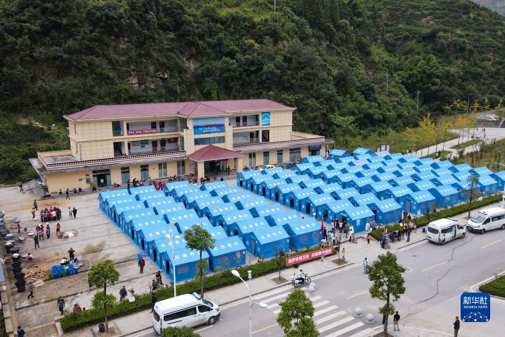 这是9月6日拍摄的位于石棉县王岗坪乡挖角村村委会的安置点(无人机照片)。
