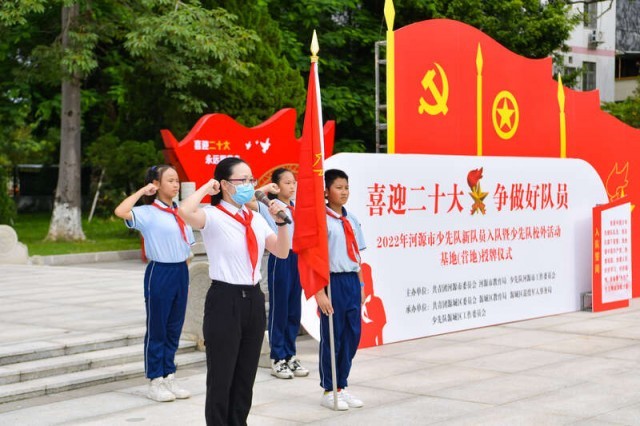“喜迎二十大 争做好队员”——2022年河源市少先队新队员入队暨少先队校外活动基地(营地)授牌仪式在河源烈士陵园举行。受访者供图