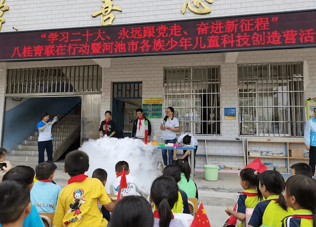 近日,团广西壮族自治区河池市委、河池青联在河池市宜州区安马乡中心小学开展“学习二十大、永远跟党走、奋进新征程”八桂青联在行动暨河池市各族少年儿童科技创造营活动。