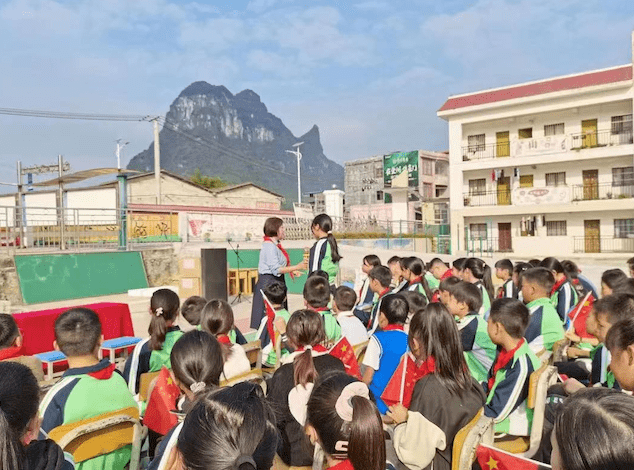 活动中,团河池市委相关负责人代表河池青联向安马乡中心小学授予“青联希望小屋”牌匾,捐赠文体用品一批。河池市红领巾巡讲团老师通过儿童化讲述、互动交流等形式,为学生们带来学习宣传贯彻党的二十大精神户外课堂,号召同学们从小感党恩,听党话,永远跟党走。