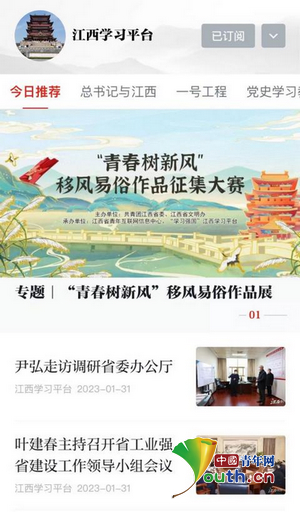 大年初一,“青春树新风”移风易俗作品展在“学习强国”江西学习平台上线,连续15天在首页首位滚动展出。团江西省委供图