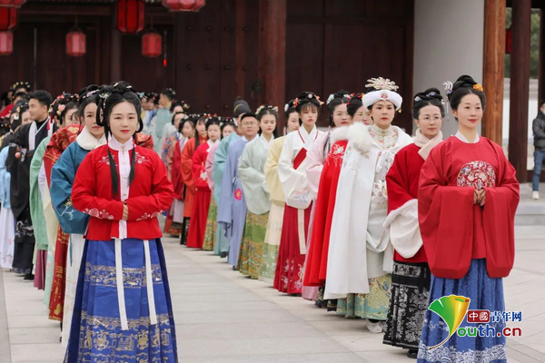2月2日,近百名青年男女身着汉服,参加团高安市委举办的移风易俗闹元宵活动。团江西省委供图