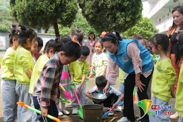 童伴妈妈带领孩子们劳作。中国青年网通讯员 左橙 摄