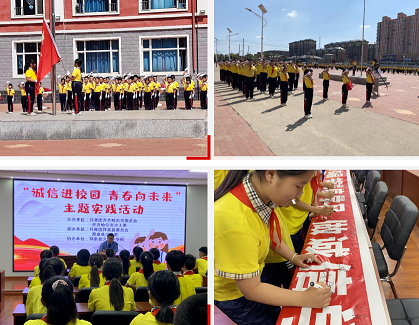 6月13日,“诚信进校园 青春向未来”青少年守信践诺市级示范性活动在拜泉县文化小学举行。活动在升旗仪式中拉开帷幕,少先队员在国旗下进行主题演讲、诚信宣誓。来自拜泉县人民检察院的校外辅导员为少先队员上了一堂《诚信是金》主题队课。
