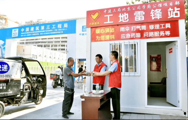 据悉,中建三局北京公司学府公馆项目“工地雷锋站”成立于今年雷锋月期间,该服务站主要为快递员、外卖员、环卫工等流动群体提供提供微波炉、医药箱、雨伞等便民服务。