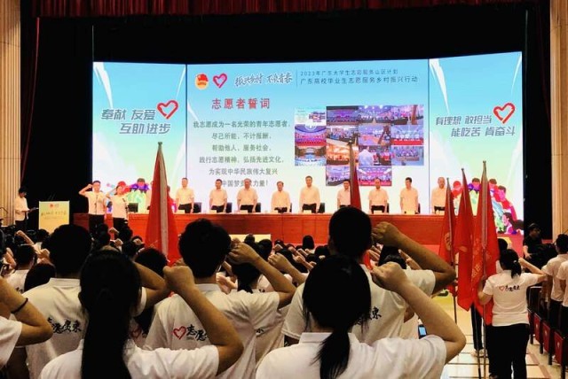 中国青年报客户端讯(庄怡烨 中青报·中青网记者 林洁)8月11日,2023年广东高校毕业生志愿服务乡村振兴行动出征仪式在肇庆市举行。5000名完成岗前培训的志愿者整装待发,出发前往粤东粤西粤北12个地市及肇庆市、惠州市龙门县乡村基层开展服务。