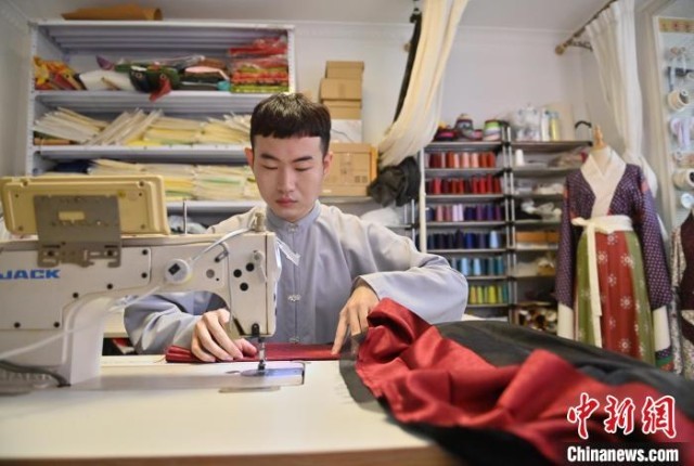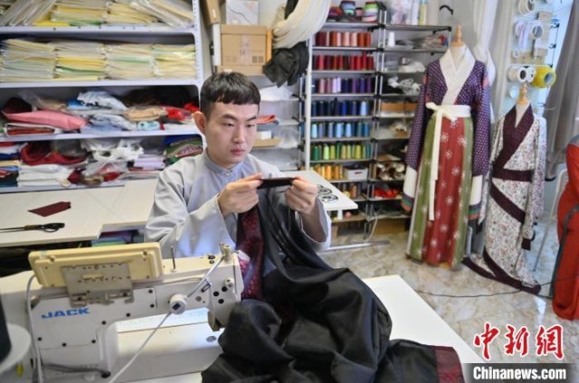 “90后”长春市民尹航是一位汉服裁缝,2015年至今已为海内外汉服爱好者制作千余件汉服。他希望通过自己的一针一线勾勒出传统汉服之美,让更多的人接触到古色古香、原汁原味的汉服。(完)