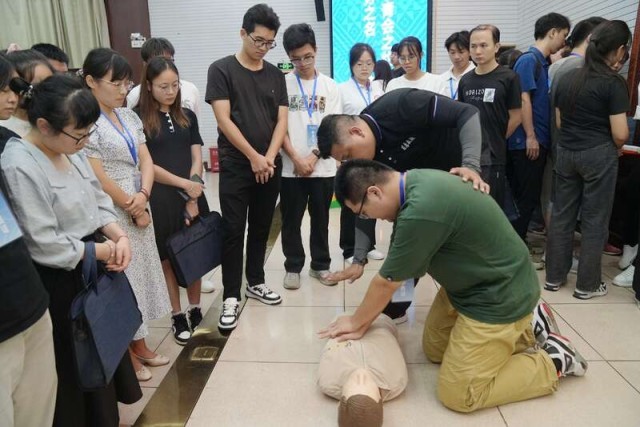 学青会志愿者骨干研学营举办期间,专家为志愿者进行应急防护安全教育培训。 主办方供图
