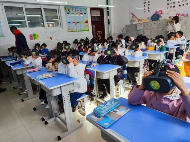 活动中,与会人员在红领巾讲解员的引导下,参观共享书亭建设项目和“书香校园”建设情况。在国防主题VR设备体验过程中,师生代表一起参观了辽宁号航母模型等国防主题教育设备,沉浸式体验战舰、国防武器装备等VR场景,利用虚拟现实的技术手段,让队员们感知科技进步,提高爱国意识,培养民族自信心和自豪感。