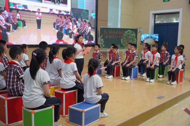 云队课伊始,两地少先队员分别向对方介绍家乡的发展、校园的建设等。随后,巢湖市世纪新都小学三一中队队员蒋缇滢讲述了渡江战役“一等功臣”马毛姐的故事,科克铁热克镇第一中心小学少先队员则表演红色节目《跨越时空的对话》。两地少先队员还载歌载舞展示民族文化。“欢迎新疆的小朋友们能来巢湖,也希望有机会能去一次新疆,和新疆小朋友们一起品尝当地美食。”世纪新都小学学生夏芮妍说。