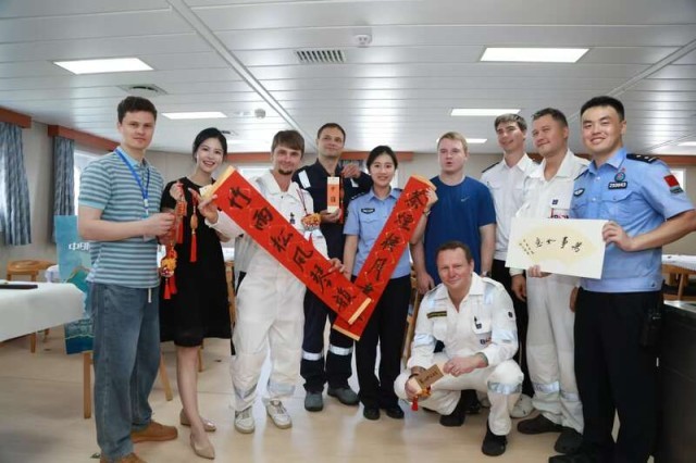 温州出入境边防检查站与船方紧密沟通,精心准备了船舱内的活动空间,将其打造成一个临时的文化驿站。中方各单位代表共同向“希洛斯”轮的船员赠送了精心准备的文化礼包,其中包括反映温州文化特色的书籍和中华传统非遗礼品。温州海外传播基地负责人为船长颁发“‘船’播中国文化驿站”牌匾,该轮成为“船播”中外文化交流的新起点。