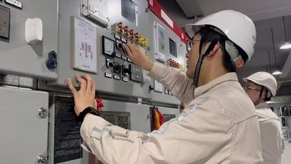 李志立(左一)在换流站同企业方共同测试。