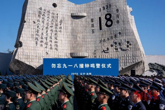 9月18日,辽宁省沈阳市,“勿忘九一八”撞钟鸣警仪式在“九·一八”历史博物馆残历碑广场举行。社会各界人士代表约1000人在现场参加纪念活动。14名撞钟手共同撞响警世钟14下,代表中华民族14年浴血抗战的艰苦历程,警醒人们勿忘国耻、振兴中华。