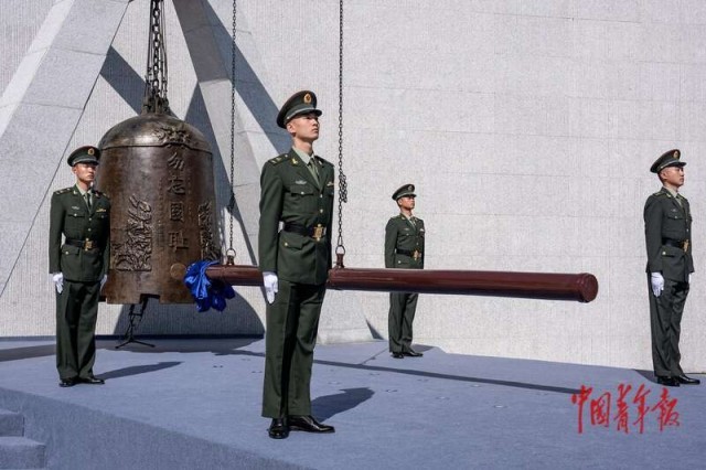 9月18日,辽宁省沈阳市,“勿忘九一八”撞钟鸣警仪式在“九·一八”历史博物馆残历碑广场举行。中青报·中青网记者 李隽辉/摄
