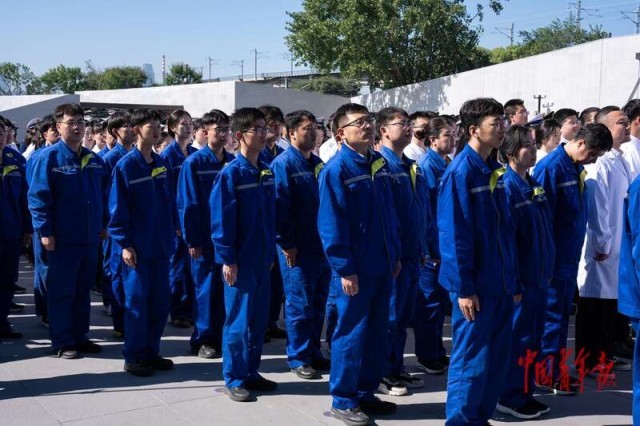 9月18日,辽宁省沈阳市,“九·一八”历史博物馆残历碑广场,参加撞钟鸣警仪式的社会各界代表列队站立。中青报·中青网记者 李隽辉/摄