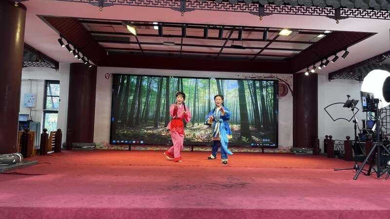 飘逸柔美的水袖舞《水中月》拉开了演出序幕,经典唱段《打猪草》在服务区黄梅戏大舞台响起,安庆师范大学黄梅戏专业的学子们身着戏装,演绎着经典剧目片段,精湛的唱腔和表演吸引旅客驻足欣赏,掌声不断。