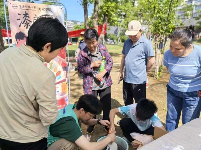 今年“五一”国际劳动节期间,应安徽文都旅游运营管理有限公司邀请,活动升级为沉浸式非遗体验。漆扇、扎染、盔帽等体验项目大受欢迎,500份材料一上午便被抢空。活动累计吸引超过5万人次参与,文创产品赠送与销售总计达7000余件。手提袋、冰箱贴、鼠标垫等小物件迅速成为游客争相选购的“伴手礼”。