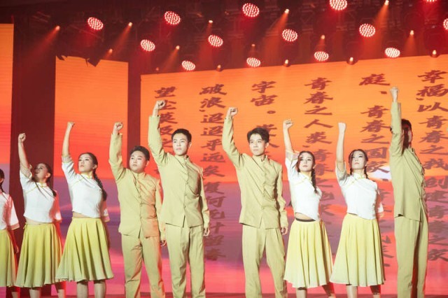 激昂的红色乐章中,大学生艺术团舞蹈团的青年学子们以舞为媒,生动诠释了百年前青年学子“以青春之我,创建青春之民族”的豪情壮志。歌曲《追寻》、朗诵《山河赋色 红旗飘扬》、合唱《保卫黄河》、民乐团及交响乐团演奏、小品《穿越时空的回信》等节目带领观众穿越时空,重温了从五四运动到抗战烽火,再到新中国建设的壮阔历史画卷。