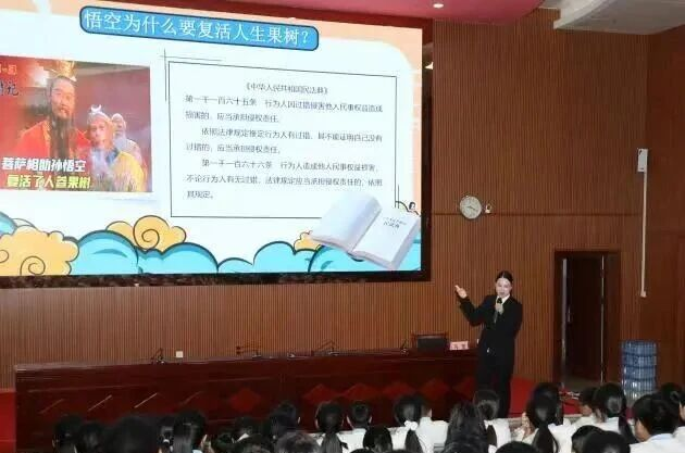 仪式结束后,来自广西壮族自治区高级人民法院、百色市德保县检察院、百色市中级人民法院、百色市律师协会、百色市公安局等单位的工作人员讲了5堂高质量法治教育示范课,全程贯穿“青言青语”“童言童语”,让法治知识变得鲜活有趣。