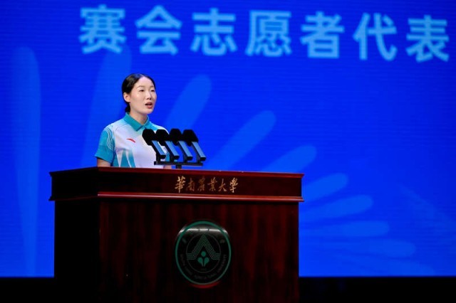 十五运会赛会志愿者代表、华南农业大学学生陈婉馨表示,“我是一名退役军人,曾经我以军人的坚守护卫国旗荣光。如今,我以志愿者的热忱护航赛会精彩,这是一场从‘迷彩绿’到‘志愿红’的使命接力,我将以奉献与忠诚、责任与担当、真诚与微笑,为十五运会保驾护航。”