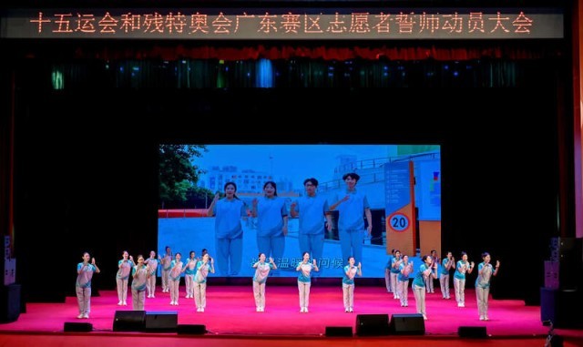 中国青年报客户端讯(中青报·中青网记者 林洁)十五运会和残特奥会广东赛区志愿者誓师动员大会10月18日在华南农业大学举行。350名赛会志愿者代表庄严宣誓:“我志愿服务十五运会和残特奥会,听从指挥、团结协作,微笑服务、不辱使命,践行志愿精神,弘扬先进文化,为湾区添彩,为祖国争光!为你,更精彩!”