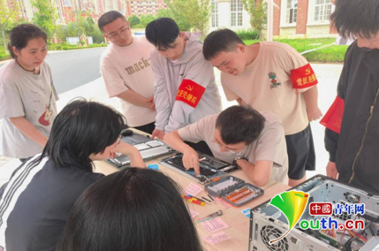志愿者正在修理电脑。 贵州黔南科技学院 供图