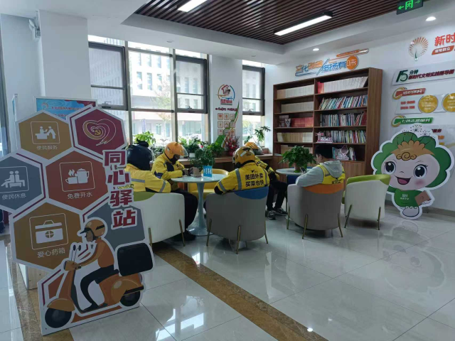 通过打造舒“新”驿站,强化阵地保障;针对快递外卖员工作时间长、休息场所缺乏等情况,联合相关部门及街道社区,高标准建设“轻骑兵驿站”36个,提供休息、饮水、充电等保障,累计服务快递外卖小哥1.7万余人次,有效提升他们的职业归属感和城市融入感。