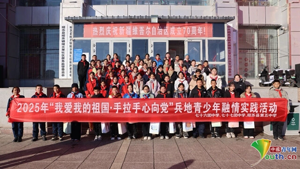 为进一步推进兵地融合发展,11月7日,共青团新疆维吾尔自治区伊犁哈萨克自治州昭苏县委联合新疆生产建设兵团第四师七十六团、七十七团共同组织开展2025年“我爱我的祖国·手拉手心向党”兵地青少年融情实践活动。来自兵团和地方的60名青少年学生通过文化研学、红色教育、集体观影等形式,在实践中进一步铸牢中华民族共同体意识。