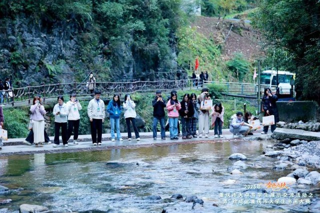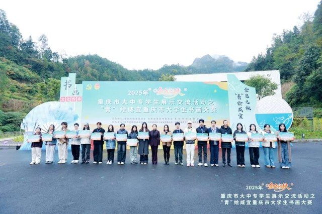 中国青年报客户端讯(中青报·中青网记者 耿学清)11月8日至9日,由团重庆市委、重庆市教委、重庆市学联联合主办,团重庆市城口县委、重庆三峡学院团委、重庆三峡职业学院团委共同承办的2025年“金色之秋”重庆市大中专学生展示交流活动之“青”绘咸宜重庆市大学生书画大赛决赛在城口县咸宜镇举办。