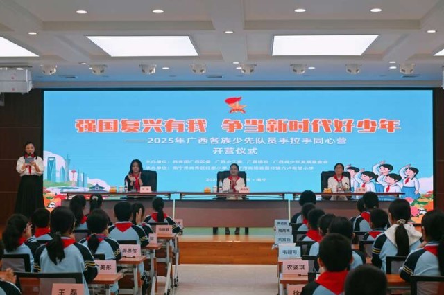 中国青年报客户端讯(中青报·中青网记者 谢洋 实习生 赵思尧)11月15日,由共青团广西区委、广西少工委、广西团校、广西青少年发展基金会联合主办的“强国复兴有我 争当新时代好少年”2025年广西各族少先队员手拉手同心营在广西团校开营。南宁市青秀区红星小学与宾阳县露圩镇六卢希望小学的60名少先队员携手参与,开启融合红色教育、科学探索与民族团结的成长之旅。