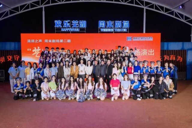 夜幕降临,实践团受邀登上无为市“濡须之声”周末剧场,献上“‘艺’往情深·高校无为一家亲”专场文艺演出。由该校各学院推送的十个精品节目,涵盖民歌、舞蹈、朗诵、器乐等多种形式,不少村民举起手机记录精彩瞬间。