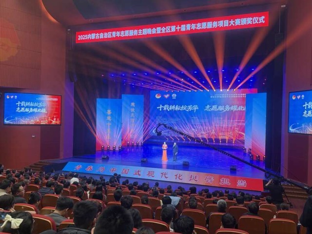 在内蒙古自治区青年志愿服务主题晚会暨全区第十届青年志愿服务项目大赛颁奖仪式上,来自各领域、各战线的优秀志愿服务艺术团体带来精彩演出。活动现场与会嘉宾为获奖项目颁奖,并聘任青年歌手云飞为内蒙古青年志愿服务形象大使。