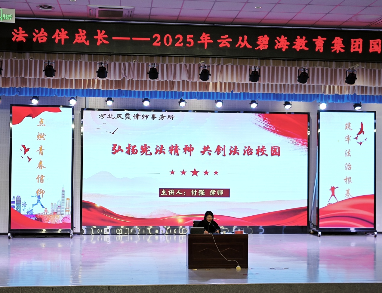 活动中,河北凤霞律师事务所律师从“什么是宪法”这一核心问题切入,结合青少年的年龄特点与认知规律,系统讲解宪法的地位和作用、发展历程及国家宪法日设立的背景与重要意义,让学生理解“尊崇宪法”与国家发展、个人生活紧密相关。抚宁区人民检察院检察官围绕校园欺凌热点话题,结合影片材料和相关法律知识,向学生讲述校园欺凌对身心、学业乃至人生的深层危害与科学应对方法,鼓励学生在遭受不法侵害行为时要勇于运用法律维护自身的正当权益。