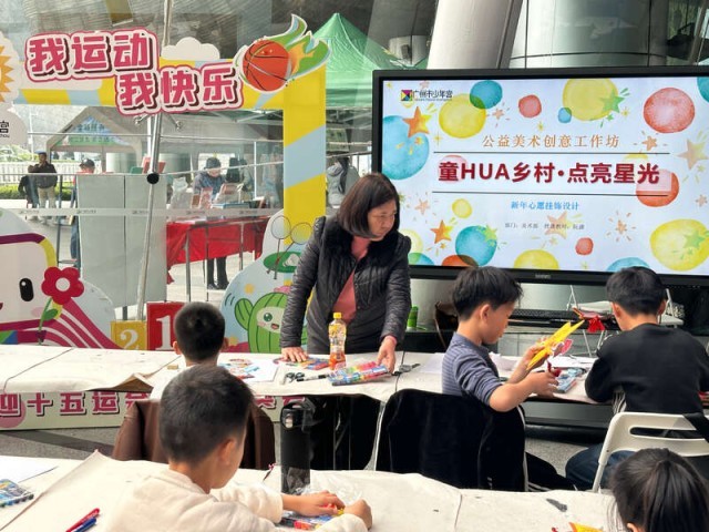 此外,“童HUA乡村 点亮星光”艺术共创嘉年华活动的优秀美术作品展和相关主题公益美术创意工作坊同步开展,展出广州市涉农区乡村孩子的100余件优秀平面绘画作品和手工作品,以及城乡孩子共同创作的爱心徽章。