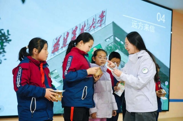 当天,福建农林大学第27届研支团宁夏分队成员分享到宁夏参加支教活动的初心和感悟;向小学生们宣讲福建农林大学教授、菌草技术发明人林占熺发展菌草业的“种草”人生,及其借助菌草技术帮助西海固人民脱贫致富的故事,引导学生们感受闽宁两省区跨地域守望相助的温暖力量,读懂闽宁协作的深厚内涵;还通过PPT向小学生们展示、介绍母校的校园环境、特色教学楼建筑及农林科研实践成果。研支团成员还带来了母校学子写给学生们的亲笔回信和“礼物盲盒”。泾源县香水镇中心小学副校长马慧英说:“希望学生们通过参加这次活动,珍惜闽宁协作搭建的宝贵平台,以梦为马、不负韶华,用知识探索更广阔的世界。”