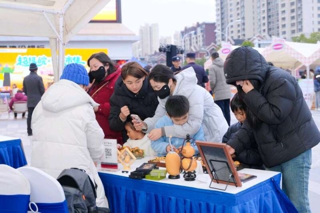 市集现场张灯结彩,29个特色帐篷、35个潮流点位依次排开,七大主题分区亮点纷呈。“青力兴农”展销区里,全省各类地理标志农产品集中亮相,同步设置直播带货专区,让乡野好物借助流量走出市集;“非遗传薪”体验区中,徽州木雕、萧县刺绣、庐州糖画等非遗项目与青年设计师打造的潮玩衍生品精彩呈现。