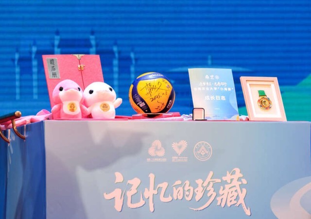 在“记忆的珍藏”移交仪式上,赛事竞委会向华南农业大学校史馆捐赠了十五运会男子20岁以下组排球冠军浙江队的签名排球、赛会旗帜、志愿者服装及“小海豚”志愿者日志等实物,以此纪念华南农业大学师生的赛事奉献。