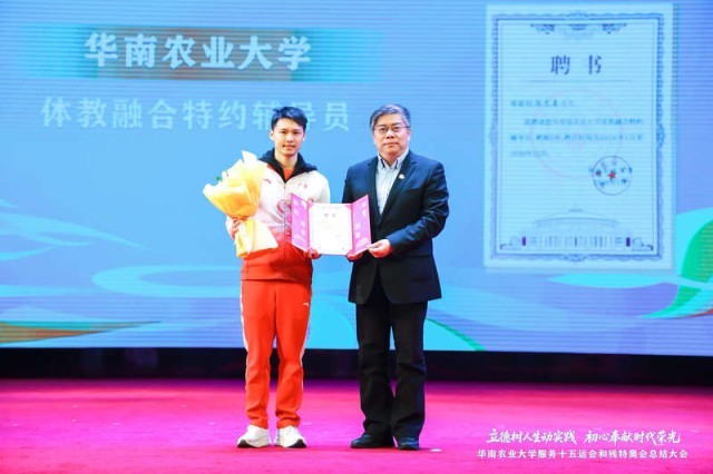 奥运跳水冠军陈艾森受聘为华农“体教融合”特约辅导员。主办方供图
